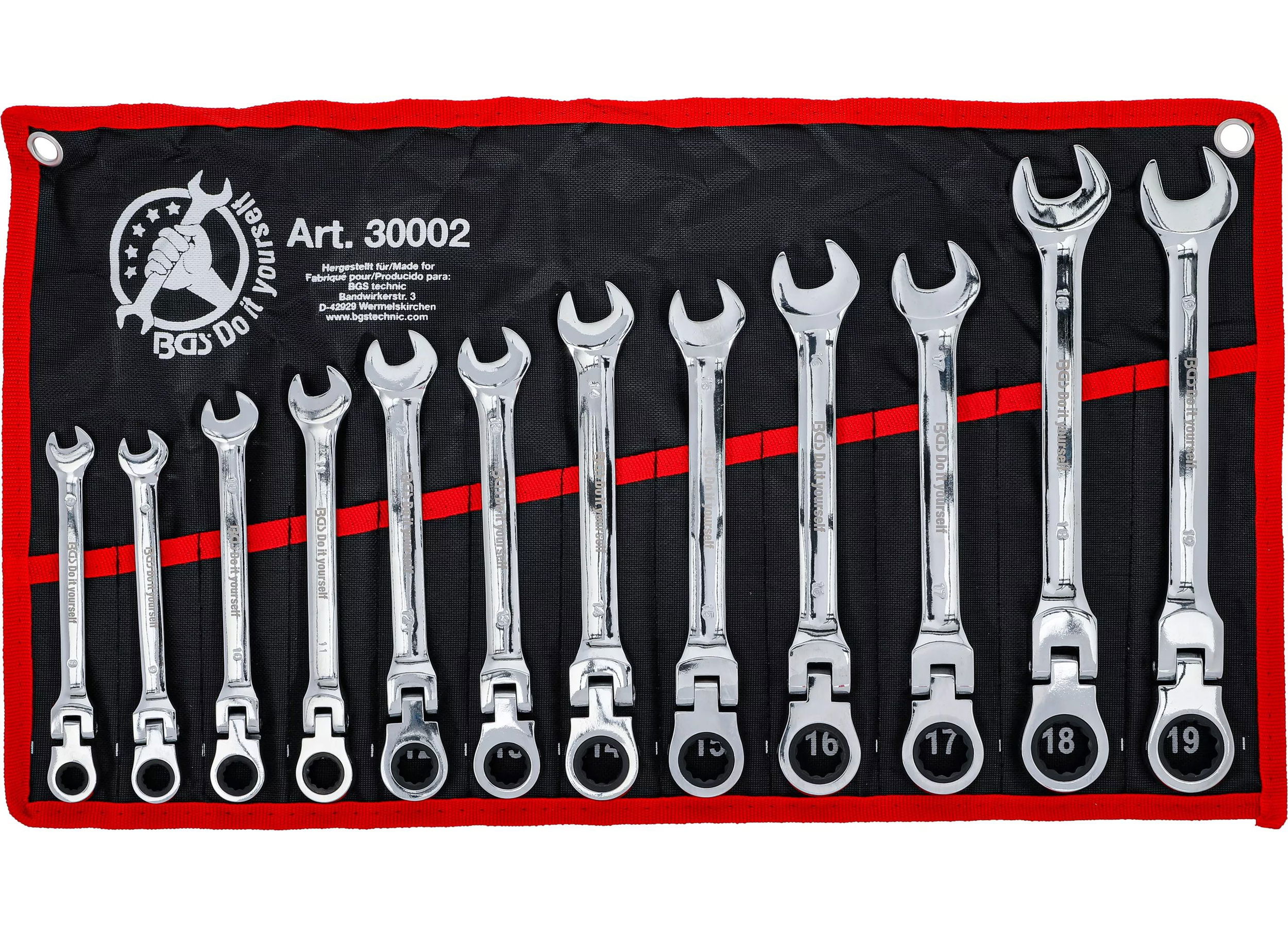 BGS Do it yourself 9-30002 csillag-villáskulcs készlet, 72-fogú racsnis-csuklós, metrikus, 12 részes